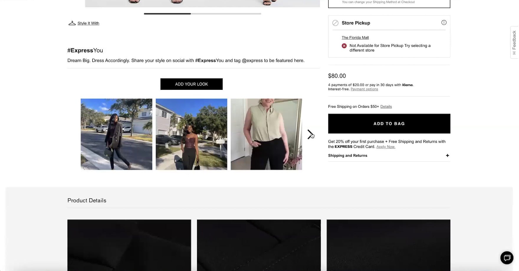 “Ok, that’s how it would fit. I like that these pictures are showing it on individuals of different sizes.” This participant at Express found the social media carousel particularly useful for visualizing the product across various body types, increasing her confidence that the pants would fit her too.
