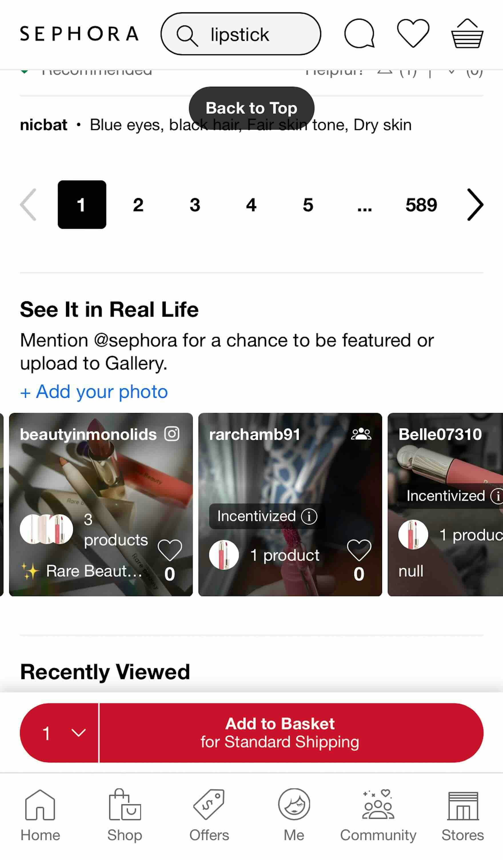 Sites can use labels to help users feel more confident in the authenticity of social media images. At Sephora, users know the post’s origin through a small icon on the thumbnail, and recognize paid promotions by their “Incentivized” label (first image). Clicking it reveals a tool tip explaining “Incentivized” in detail (second image). And the “via Instagram” text under the username in the third image links directly to the user’s original post on Instagram.