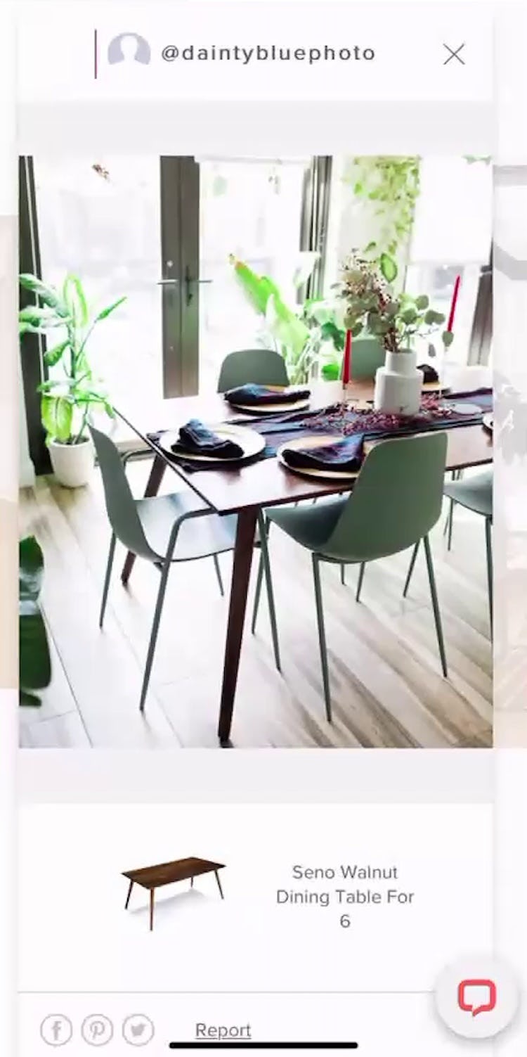 “Looking at what other chair options I have….” Some users turn to social media images to ensure they can find complementary products, like this participant who perused different chair styles to pair with a table at Article.