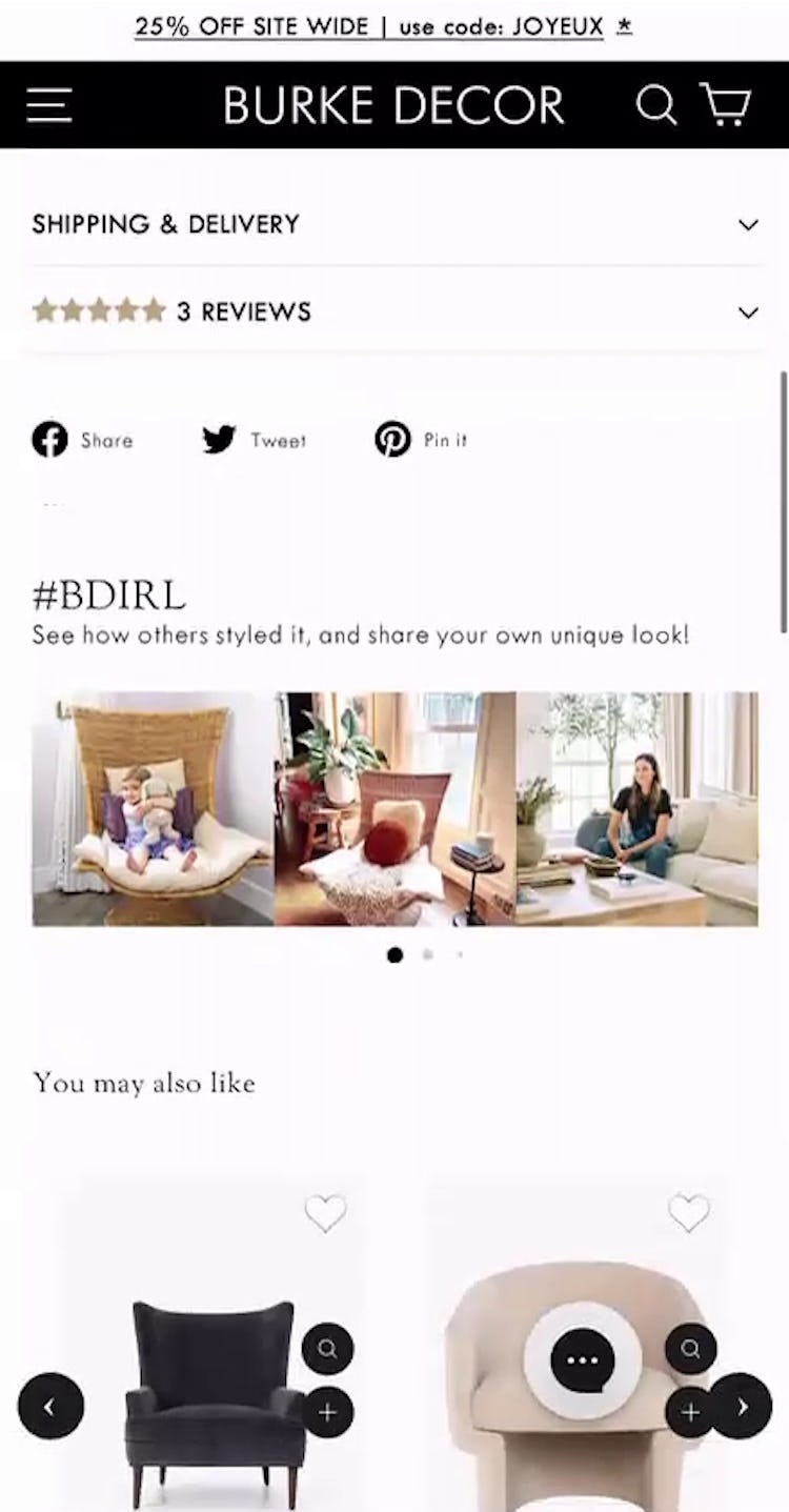 This participant from testing at Burke Decor was at first excited to see the social media carousel on the product page, but upon further inspection, the images were of generic products, not the specific product he was considering, so they weren’t helpful for his current task.