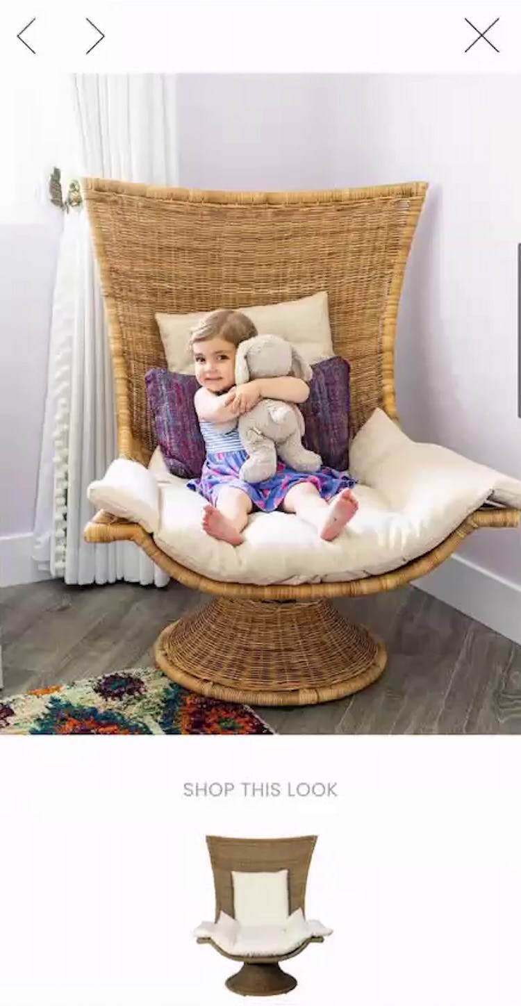 “This reminds me of my own daughter. It almost looks like I could sit there with her and read a book or something. Very nice, very homey. I do love that.” Another participant at Burke Decor on iOS spotted in the social media carousel (first image) a photo of a child that looked like her daughter (second image), helping her envision using the chair in her own life more vividly.