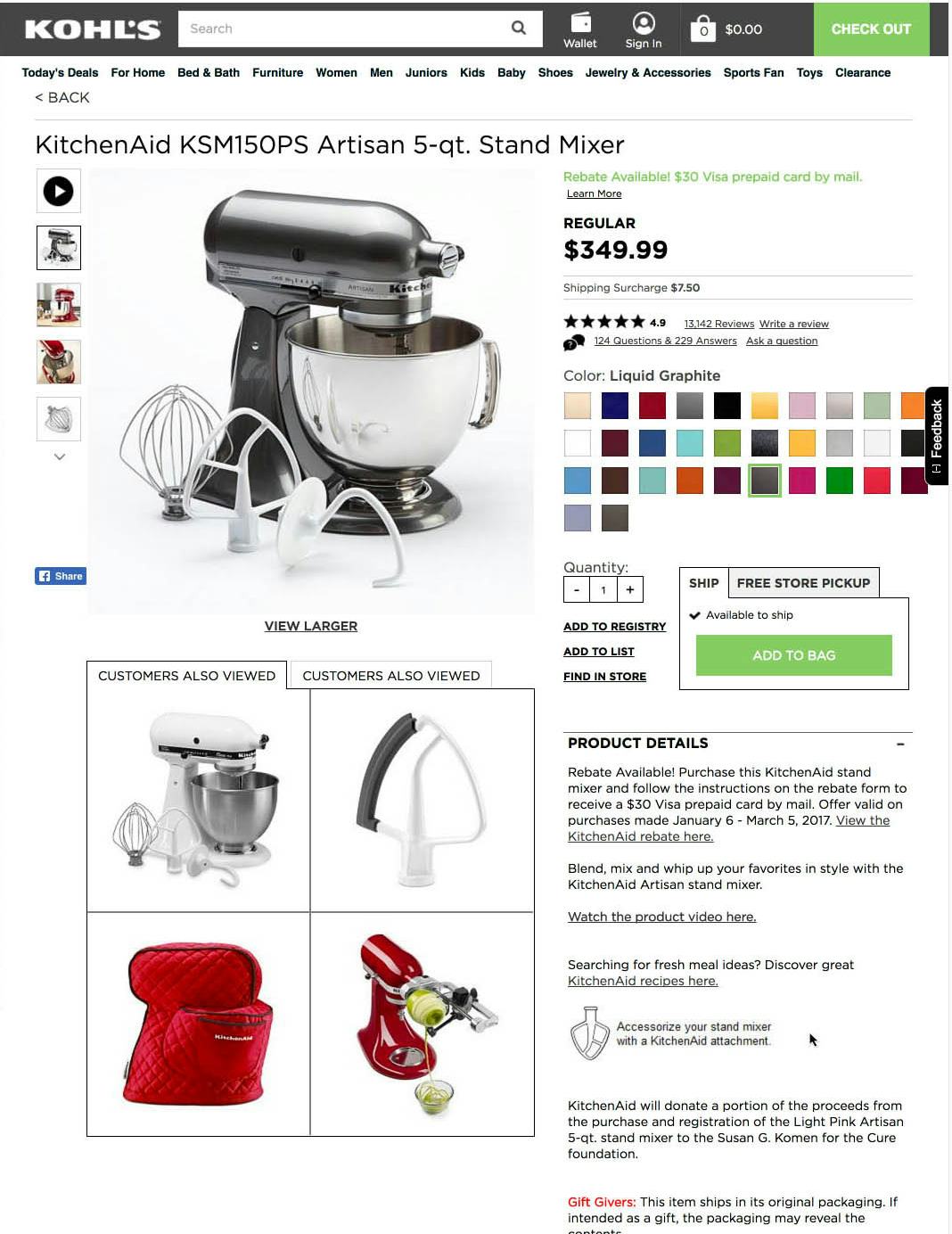 Kohl’s product pages include links to compatibility-based product lists (where relevant). This makes it easy for users to find accessories and feel confident that they will be compatible with the item they are about to buy (or already own).
