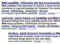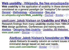Google search utilize the “visited” state, allowing for the link to Jakob Nielsen’s website to be distinctly styled.