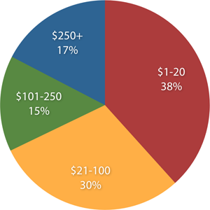 Total mobile spending amount distribution – notice how 1/3 of mobile shoppers already spend $100+ during a two month period.