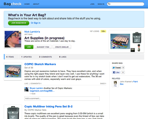 Bagcheck uses a metaphor to set a different context for what is essentially just link lists.