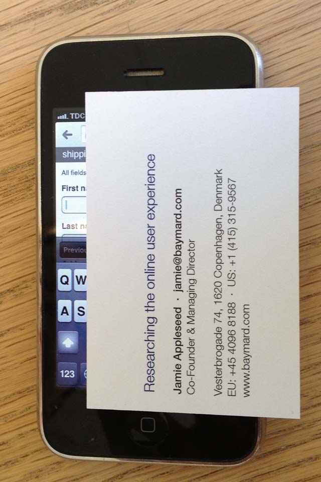 When designing a mobile checkout think back on that business card. Your users will have to go through a number of pages and fill out a bunch of form fields all within that tiny area, and they typically have the touch keyboard open which cuts the available screen real estate in half! These 6 recommendations are a good place to start in order to deal with this extreme lack of page overview that your users suffer under during the mobile checkout process.