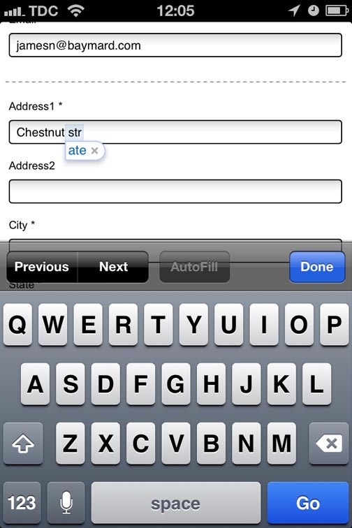 The checkout process is dominated by form fields, so naturally any form field usability issues will tend to cause trouble during the checkout process. Some of the most severe issues that arose during testing were due to basic mobile form usability issues such as: