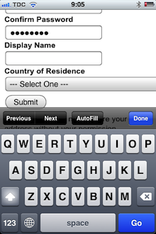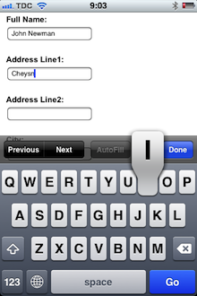 Typing on a touch keyboard is a slow and error-prone exercise so make sure to keep your form fields to an absolute minimum and pre-select clever defaults. Furthermore, you need to consider how you deal with errors in data.