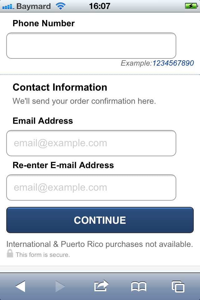 The main downside of placing labels above the field is that it takes up more vertical space, which means users have to scroll more – however, during testing the scrolling gesture itself proved very intuitive to the users and not a hindrance to completing a form. Thus it’s only in the case where the form is so short that a complete form overview is achievable with the left-alignment vs. above-alignment (with the keyboard open) that left-alignment might be defensible on mobile in portrait mode (forms for address, payment or account sign-up will hardly ever be this short, while a newsletter sign-up asking just for the user’s e-mail address would).