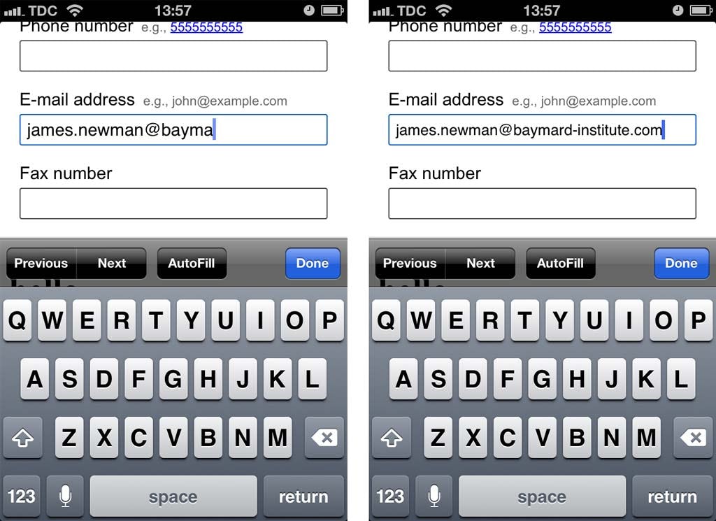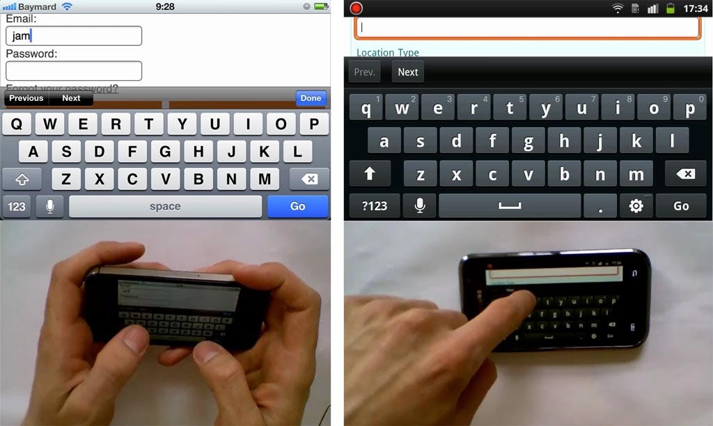 Yet the matter is complicated by enormous keyboards when the phone is in landscape mode, with only one third of the screen being dedicated to the actual form (and in some cases even less than that!). Therefore, to alleviate this extreme loss of page context, you should reposition field labels to be left-aligned in landscape mode.