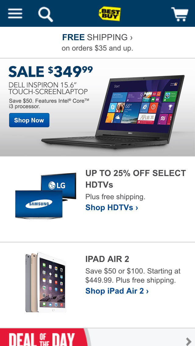 While it’s clear from Best Buy’s homepage that they sell consumer electronics, it’s easy for the uninitiated user to conclude that this is all Best Buy sells on their website, since there’s no references to any of their other product types (such as kitchen appliances, health products and furniture).