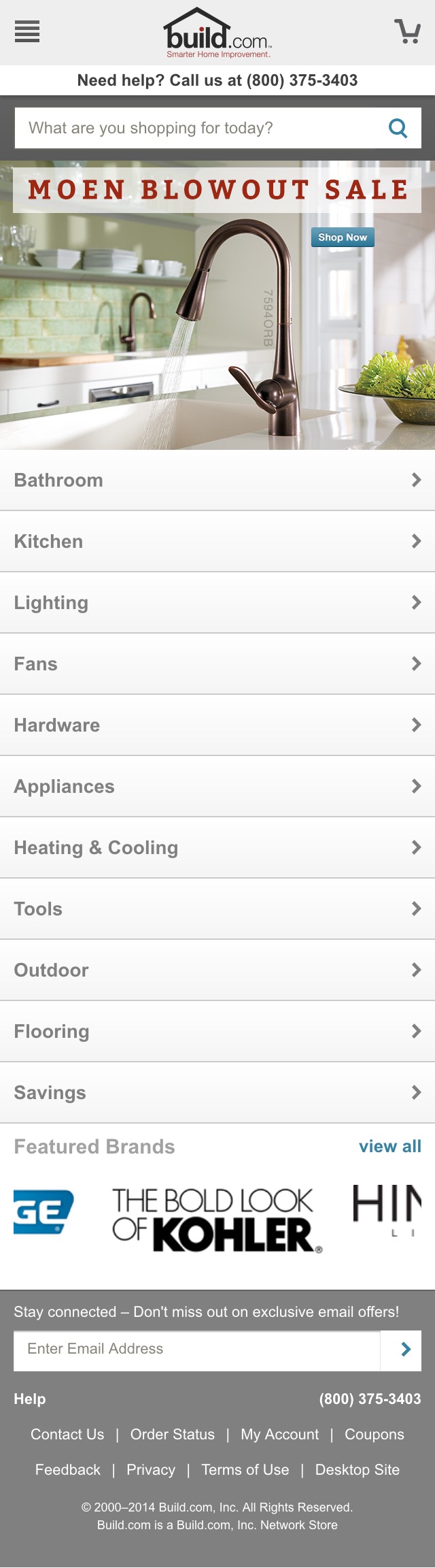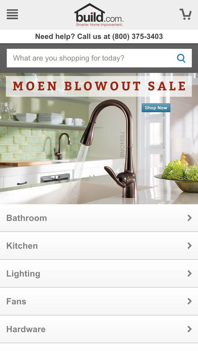 Build.com’s homepage features their entire top-level hierarchy allow users to see the full diversity of the site’s product selection.