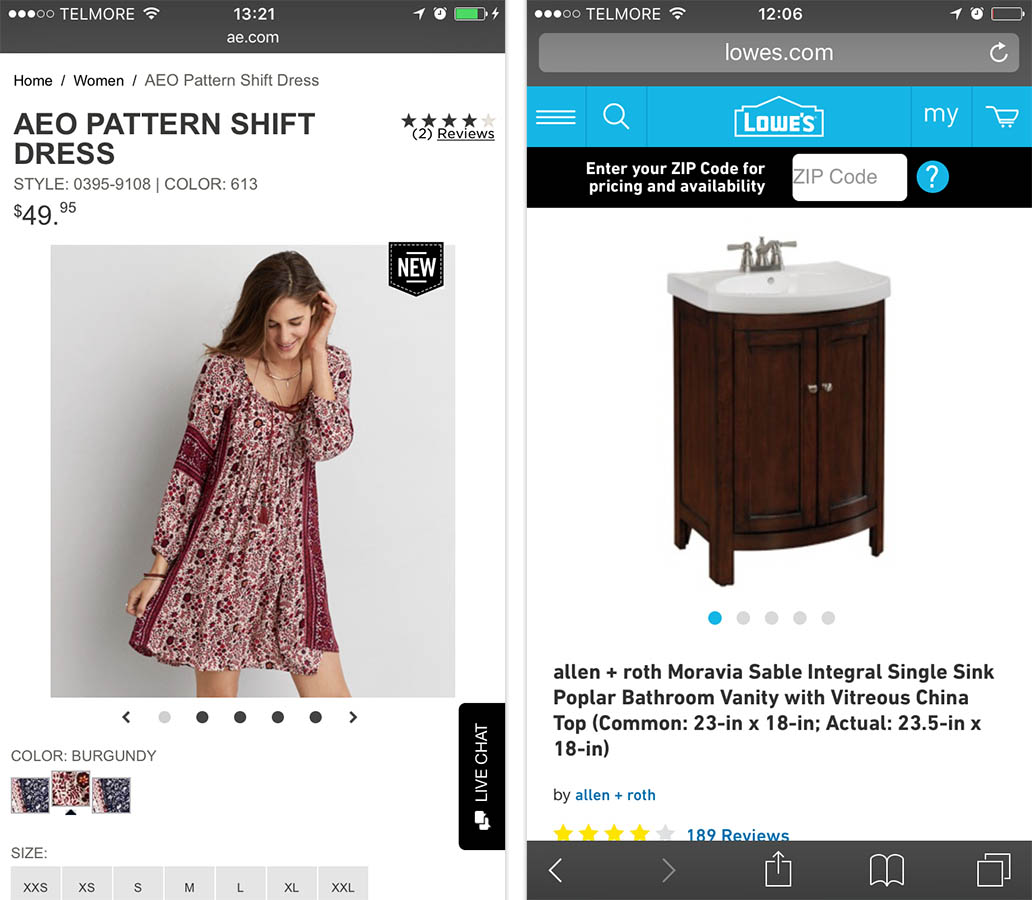 During our mobile usability testing of e-commerce sites we’ve time and again documented that users try to use gestures such as pinch, double-tap, and swipe, to try zooming and navigating images on mobile product pages. However our latest benchmark of 50 top-grossing US mobile e-commerce sites reveal that 40% fail to support these image gestures.