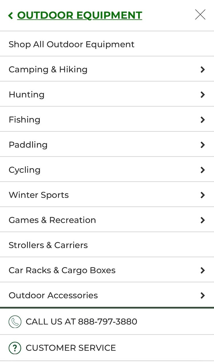 On mobile sites, however, due to the lack of a hover state, sites have to determine whether a user tapping a main category should expand the subcategories within it, or take users to the landing page for the main category item (e.g., a broad product list or an intermediary category page).
