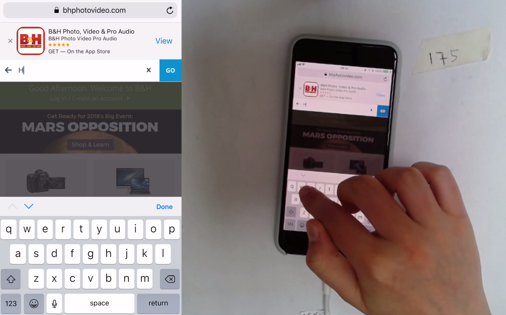 While a prominent “Go” button is provided in the interface adjacent to the search field, the iOS alphanumeric keyboard invoked at B&H remains in its default state, only displaying a gray button reading “return”. While this may not pose a challenge for experienced iOS users, most users would be helped with button text more clearly related to search.