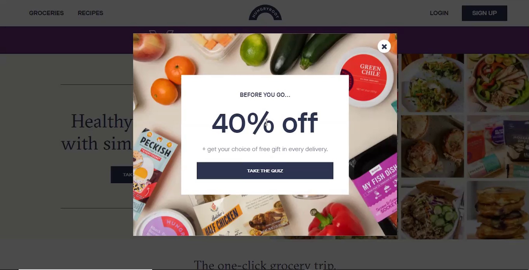 “I don’t know how long this quiz is, but hopefully 5 questions or so.” At Hungryroot, users who saw the numerous “Take the Quiz” CTAs — such as on this promotional overlay — had no idea what to expect in terms of the time commitment required before they entered the quiz flow. Many users will hesitate to commit to taking quizzes if they don’t have a general idea of the time required to complete them.