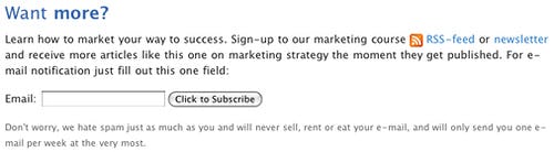 Placing this sign-up form at the end of the article increased sign-up rate by 274%.