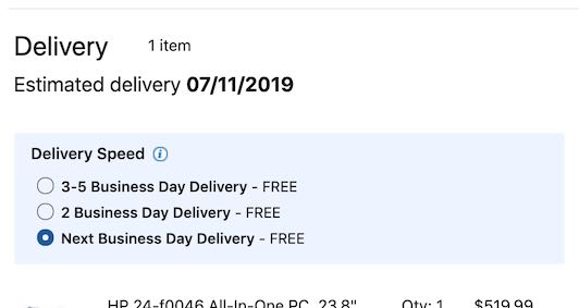 Office Depot provides an estimated arrival date, the shipping speed, and the cost of the different shipping methods.
