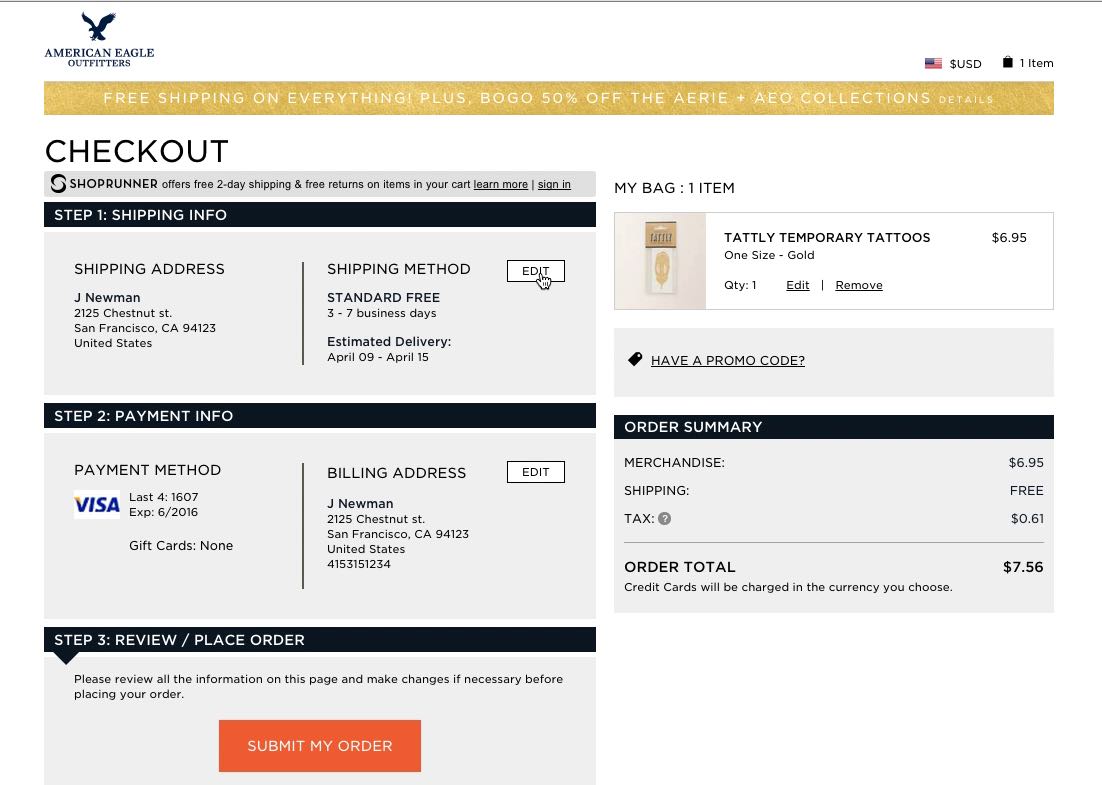 During our large-scale checkout usability testing, users at the “Order Review” step were often observed to find errors in their order information, which they naturally wanted to edit before finalizing the order. This is in itself a positive thing, as it justifies the presence of the review step.