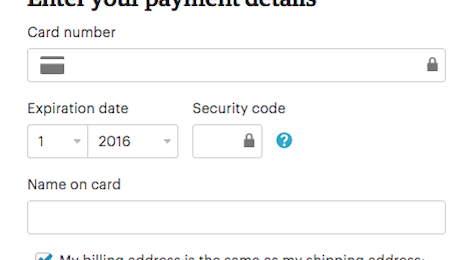 Our 2012 checkout usability benchmark revealed that 89% of sites didn’t visually emphasize the security of their credit card fields, whereas our 2016 checkout usability benchmark shows that it’s now only 66% of the major US ecommerce sites that lack visual emphasis. (It’s worth noting that this significant improvement is despite these being major e-commerce brands which have the lowest need to increase their perceived security.)