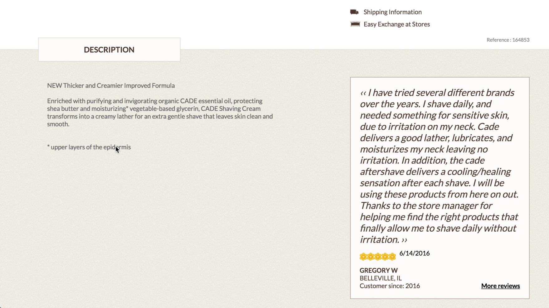 “I would have thought [the ingredients] would have been under the description.” A user was disappointed not to find a list of ingredients in the product description for L’Occitane’s shave cream. She dismissed the product when she was not able to find this information. Users will often abandon a product when important information is missing from the product description.