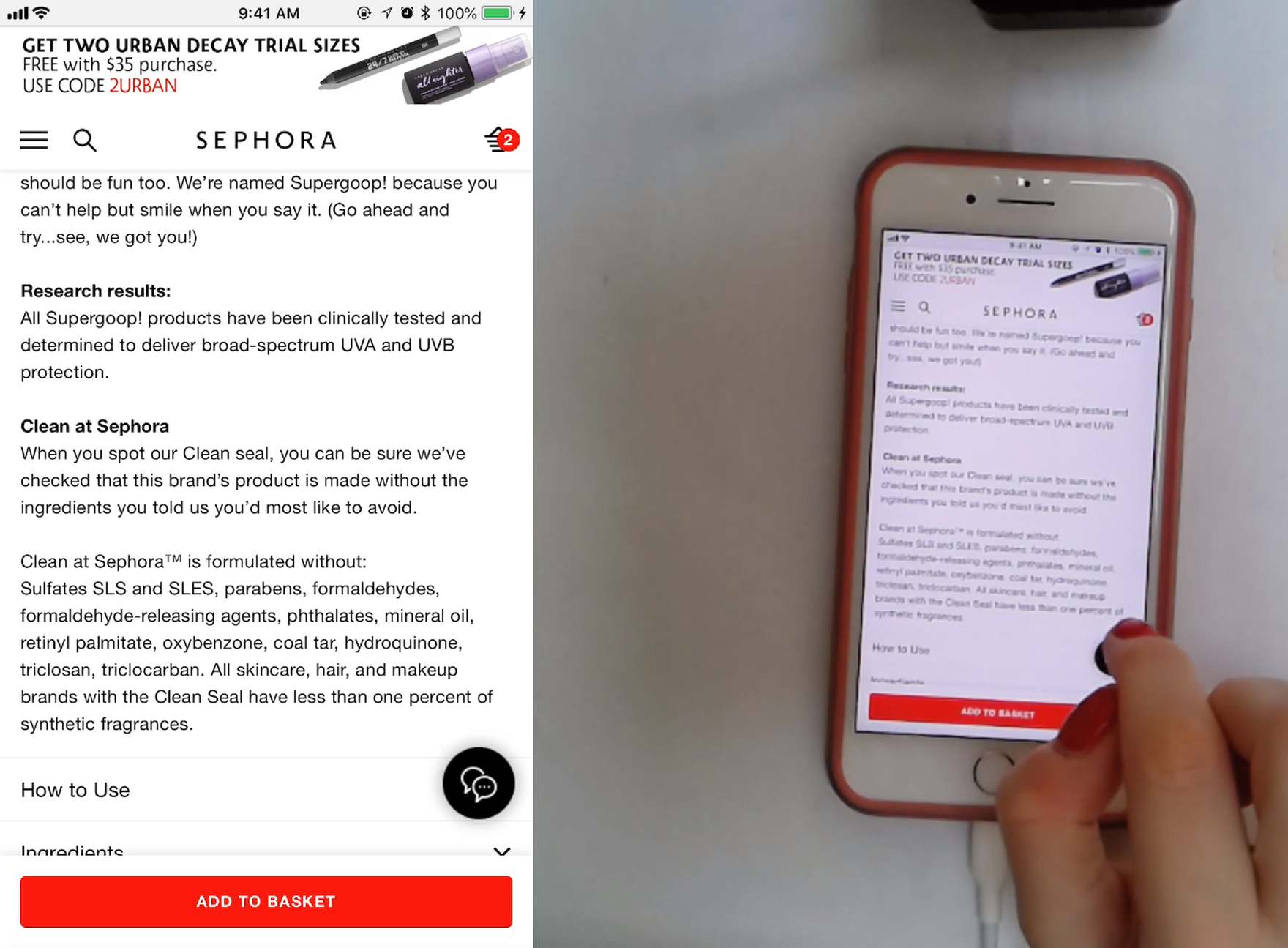 Another user at Sephora viewed a product description where the list of ingredients were similarly laid out: “‘Dimethicone’, that kind of freaks me out. Because that’s…silicone. Sometimes I don’t like the way silicone products feel on my face. So I would say ‘no thanks’ to that”. While this user ultimately did not purchase the product, she felt confident in her choice due to the detailed product information.