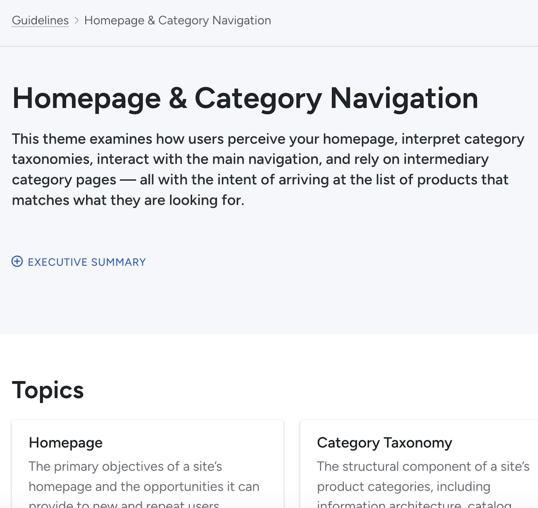 The remaining guidelines have been combed through by our research team to ensure they are not only valid but clear, actionable, and highly relevant to determine a particular site’s Product Finding UX performance.