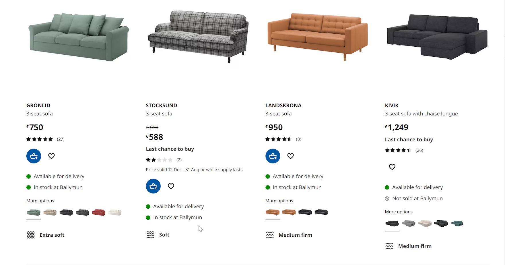 IKEA includes both product title and type, as the names alone would be of little value to the user. A title such as “STOCKSUND” or “KIVIK” is only meaningful to the user as a unique identifier of a product series. However, including product types like “3-seat sofa” makes it perfectly clear what the items are.