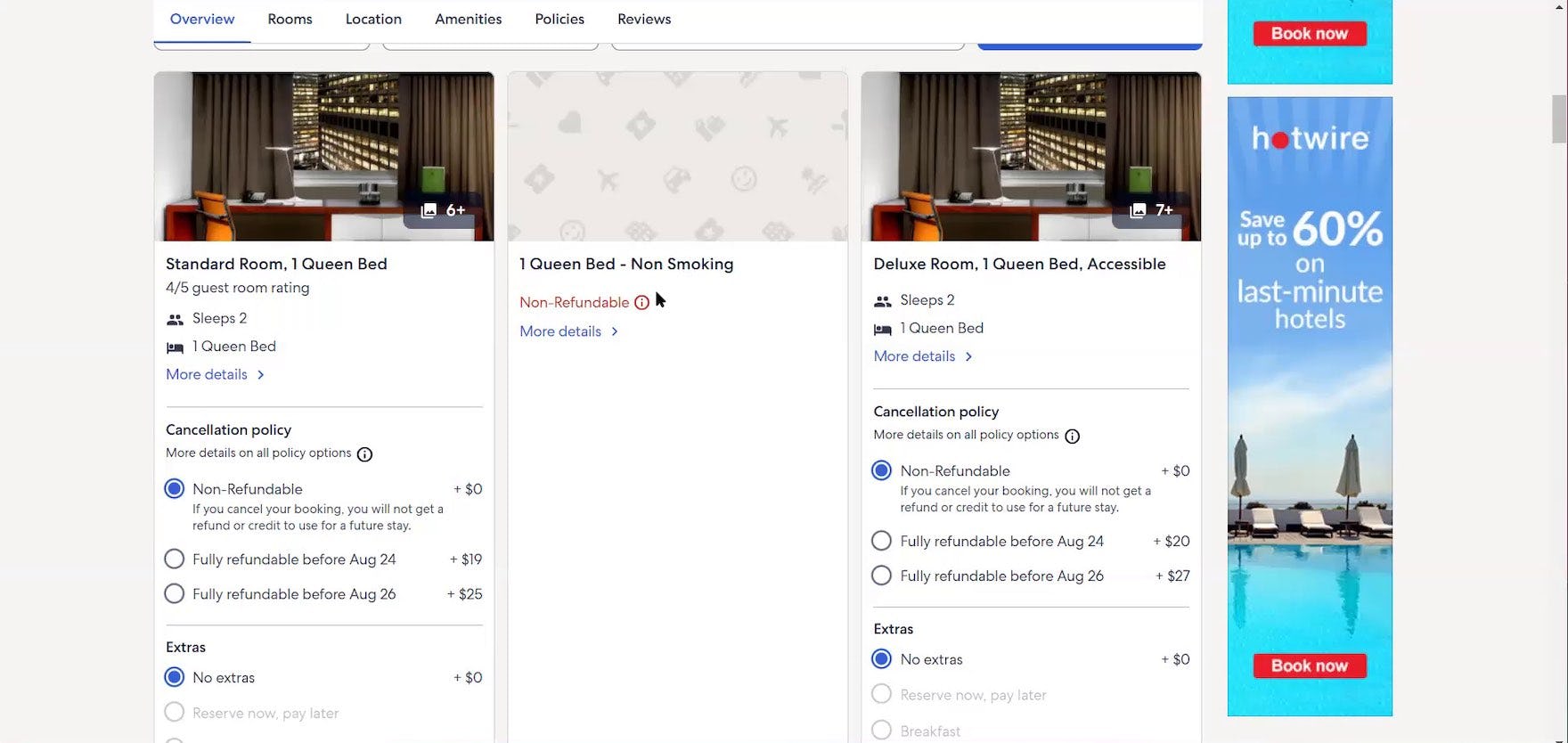 “So that’s a little — they don’t have a picture or anything — different”, laughed a participant shopping for hotel rooms at Expedia as she skipped past a nonrefundable room with no thumbnail. During large-scale Travel Accommodations testing, thumbnail images were essential to participants’ success in identifying suitable properties and rooms to book.