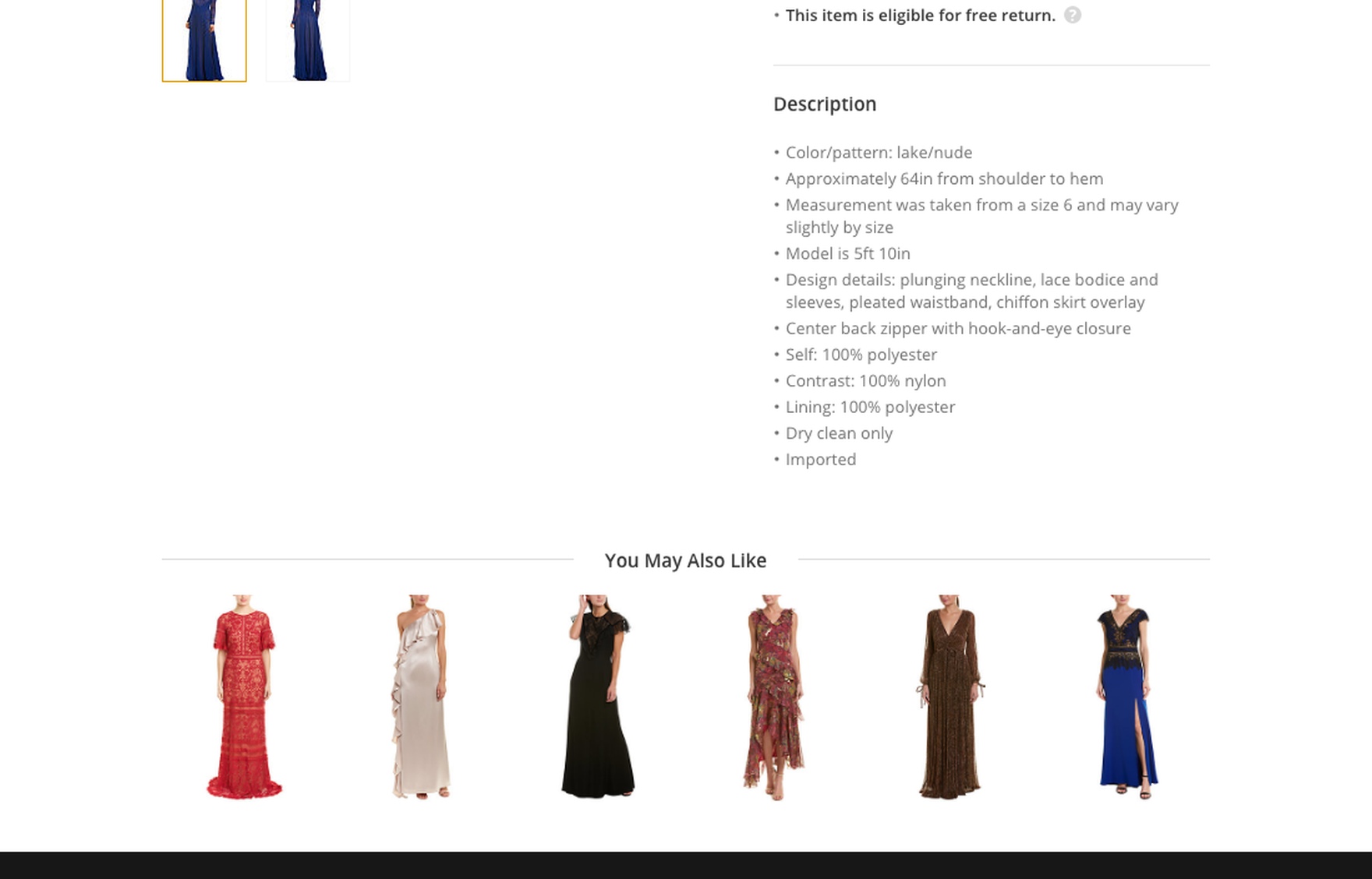The tiny product thumbnails in the “You May Also Like” cross-sells section at Gilt make it difficult for users to adequately assess these dresses, risking users rejecting perfectly relevant alternative options.