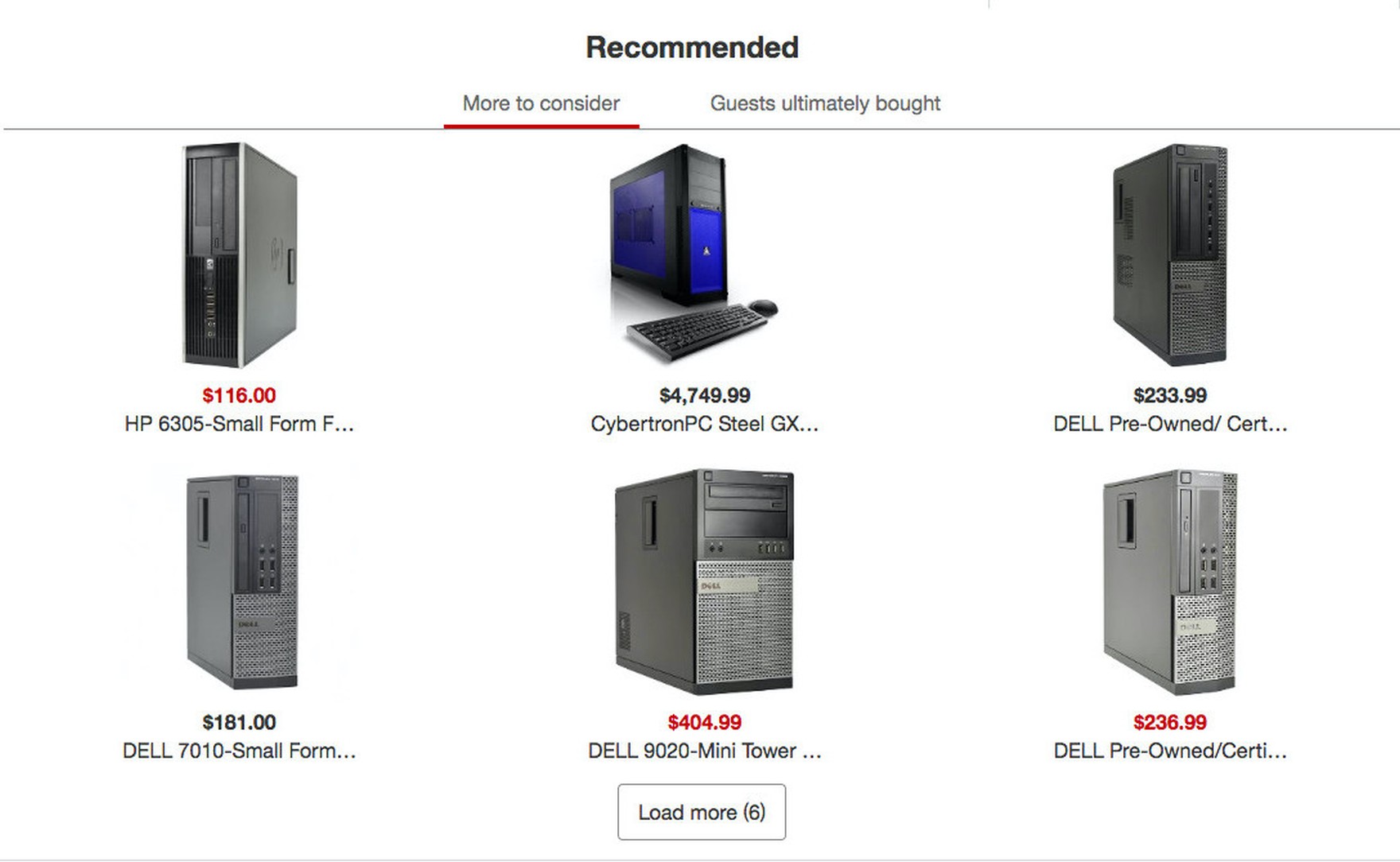 Cross-sell recommendations without thumbnails are often completely ignored, as most users perceive these suggestions as “incomplete” and thus less relevant.