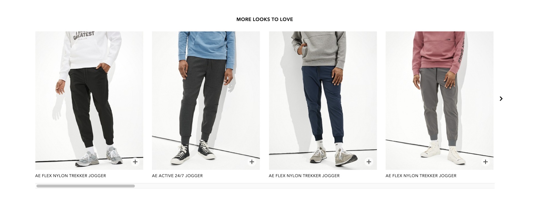 Without price, users are unable to easily determine if any of the alternative product recommendations at American Eagle are a suitable substitute for the currently viewed item.