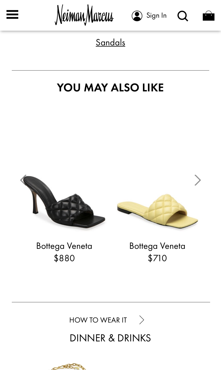 At Neiman Marcus, the absence of information about product variations in the “You May Also Like” cross-sells section (first image) risks users overlooking that alternative items may indeed be available in a more preferred color (second image), and rejecting them. Color variations can heavily influence users’ decisions to explore cross-sell recommendations, particularly for highly visual products.