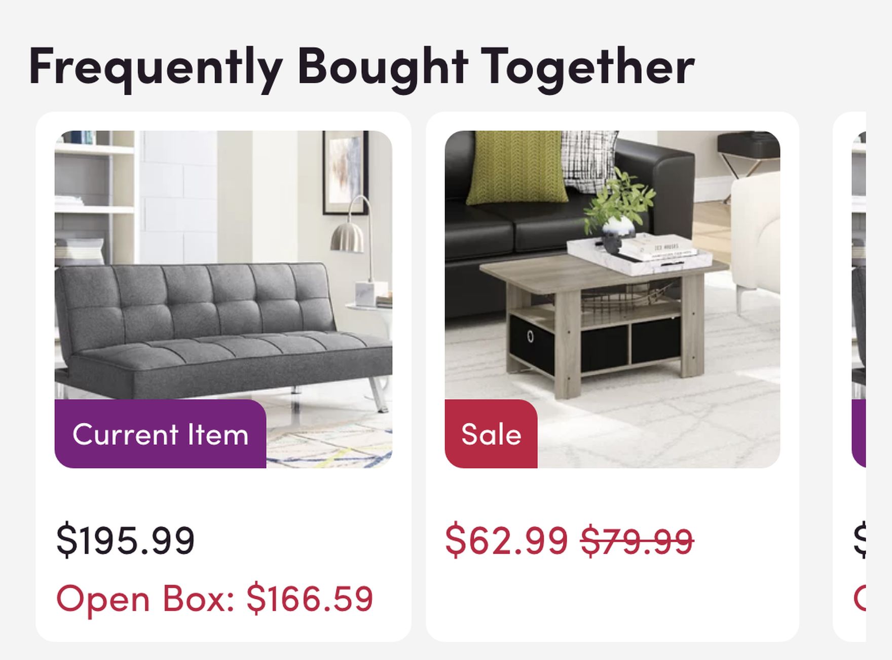 Product title or type is also critical for users when evaluating the relevance of cross-sell recommendations.