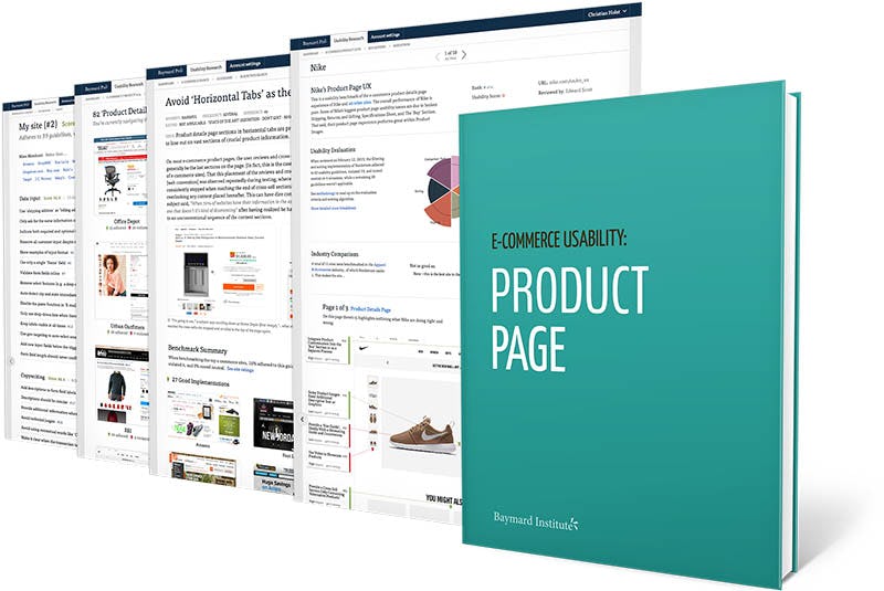 You can learn more and get full access to the Product Page Usability report and benchmark at baymard.com/product-page