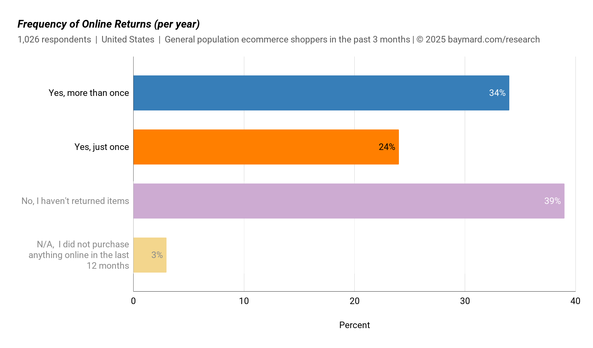 Returns are a fact of life when it comes to e-commerce: our quantitative study of users’ return habits finds that 58% of users had made at least one return of an online purchase over the past year.