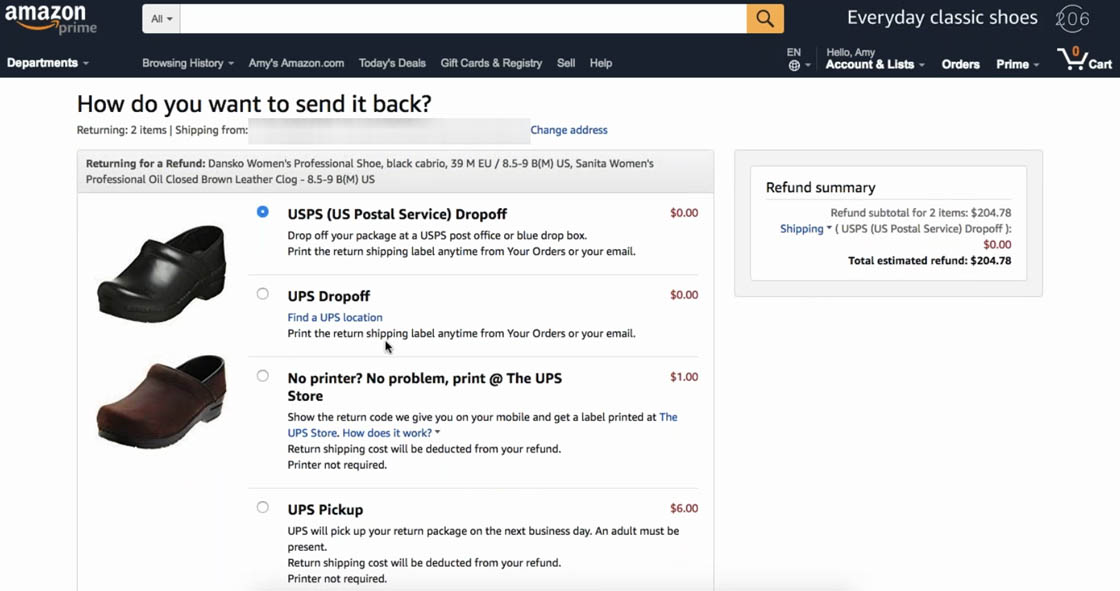 “I’m just going to go to the post office! That is closest to my house, so I’m going to submit”. Returning a product purchased online to a physical location can be the most convenient option for some users. Note that at Amazon, which doesn’t have traditional brick-and-mortar stores, users can still access the benefit of being able to return a product to a physical store by dropping the product off at a shipper.