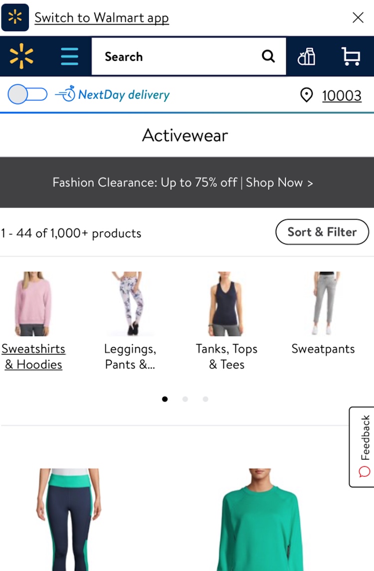 If a site offers more than 2 or 3 promoted filters, one option is to display them as horizontally scrollable lists, either with truncation (as in the Walgreens example above) or with scroll indicators (as in the Walmart example).