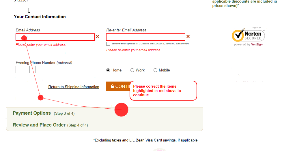 At L.L. Bean, 22% of users during testing tried to proceed without entering their email address for confirmation, as neither this field nor the email field were marked as required.