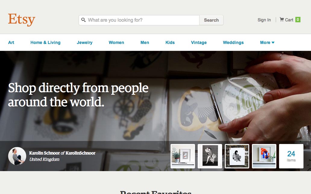 Etsy features a large search field in the very center of the page header – a design that encourages users to search.