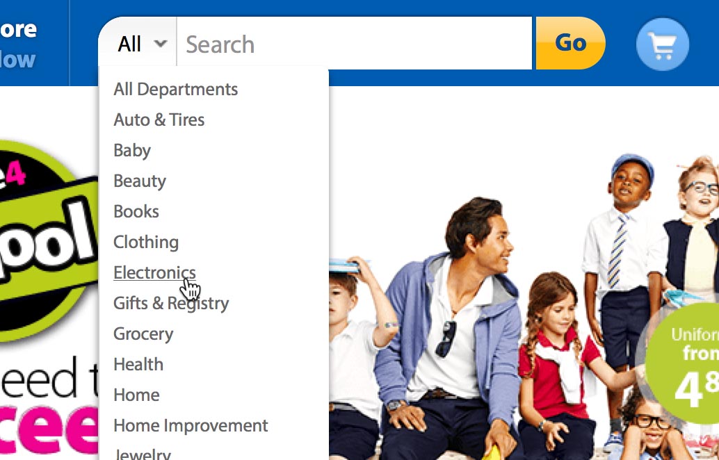Search scopes are one of the key differences between e-commerce on-site search and general web search. E-commerce sites have their products organized in categories which in turn can be used as “search scopes”. This allows users to limit the boundaries of their search to a specific category.