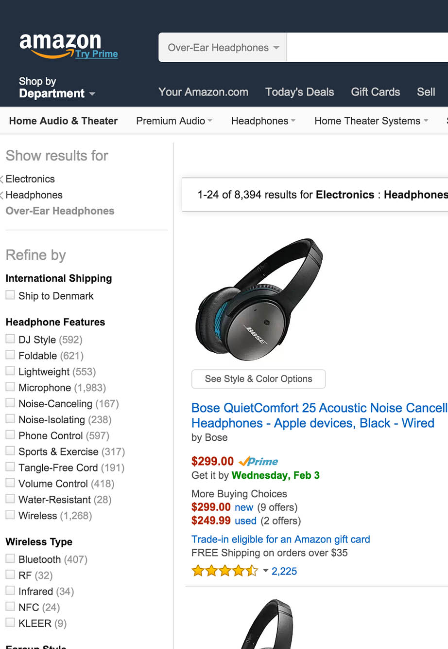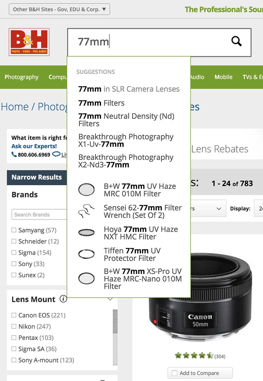 Indeed, such strong encouragement towards search requires that your site has a top-tier search engine with flawless support for Feature Search Queries – which we found 56% of large e-commerce sites to lack.