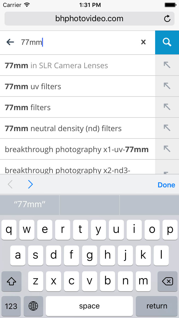 During our mobile e-commerce usability study we observed that more than 50% of users tried to “search within” their currently navigated category path, in an attempt to “filter the product list on my screen with a search query”. Yet, 94% of mobile e-commerce sites do not support such behavior – and will instead perform a site-wide search query.