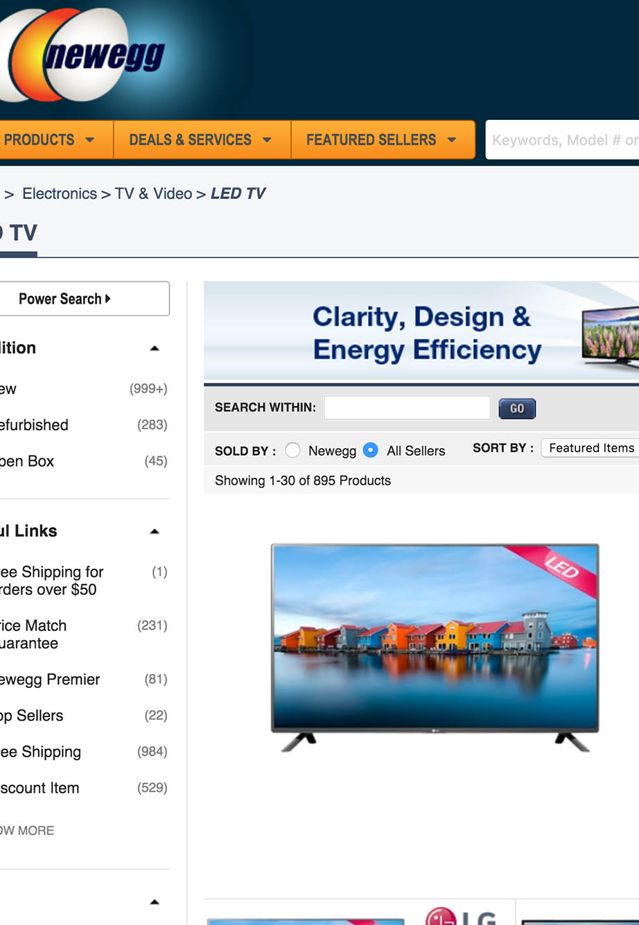 3) A dedicated ‘Search With’ field: At NewEgg users are allowed and encouraged to search within the current navigated category, yet still have the option to access the site-wide search option in the site’s header.