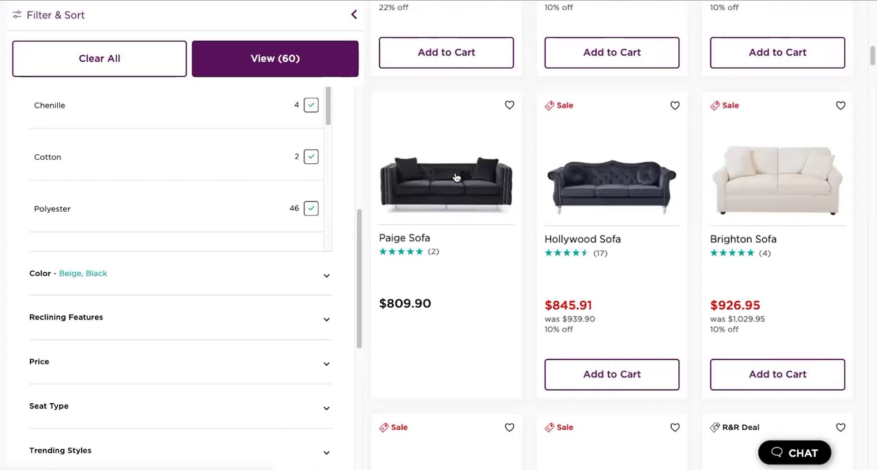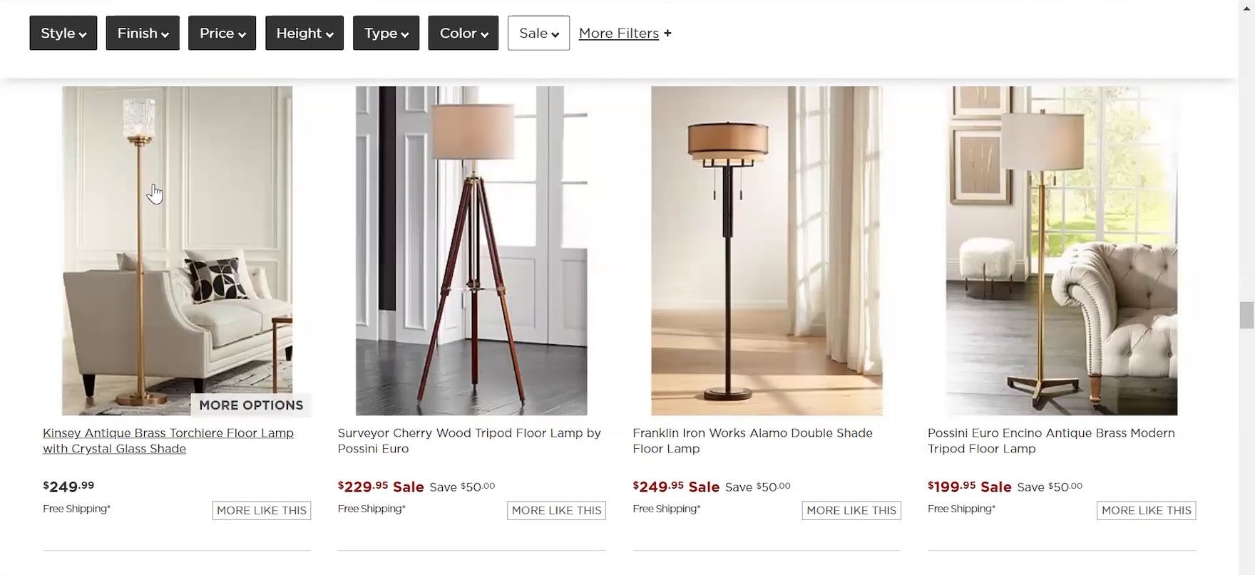 “I like the pictures here. [But] I like how IKEA had them in a room too.” This participant at Raymour & Flanigan was only able to see the couches in the product list as “Cut Out” thumbnails, even though she liked to see “Lifestyle” images in the product list too. Since no additional thumbnails were provided, she wasn’t sure whether extra images were available or not, even on the product page: “Out of curiosity, I would probably open one in a tab and see if they have more pictures showing it in a room.”