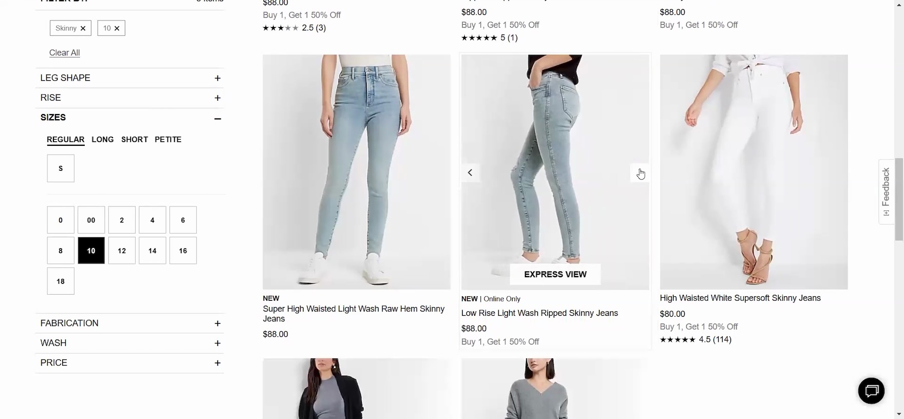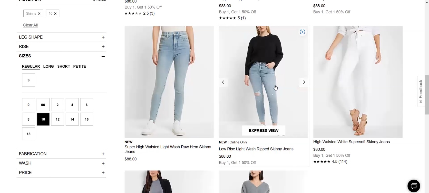 “I like how it has the different views that you can see, like right in this aspect right here. That makes it super convenient!” exclaimed a participant at Express while clicking through a thumbnail carousel for a pair of jeans (first to third images). Confident after viewing multiple thumbnails of the jeans she was interested in, she opened its product page and immediately added the jeans to her cart: “I do like those. So I click it! And then add it in.”