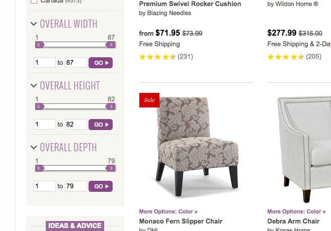 If the basic implementation details are in place, however, and low-latency live updating of the product list results is achieved, one may take sliders to the next level by experimenting with ‘fuzzy’ boundaries to support users’ single-point mental metal of wanting something “around $30”.