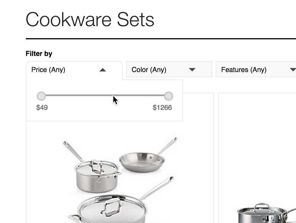 Sliders are generally rare on e-commerce sites. Only 16% of the top 50 sites have a slider for setting any type of filter. And that is rightfully so.
