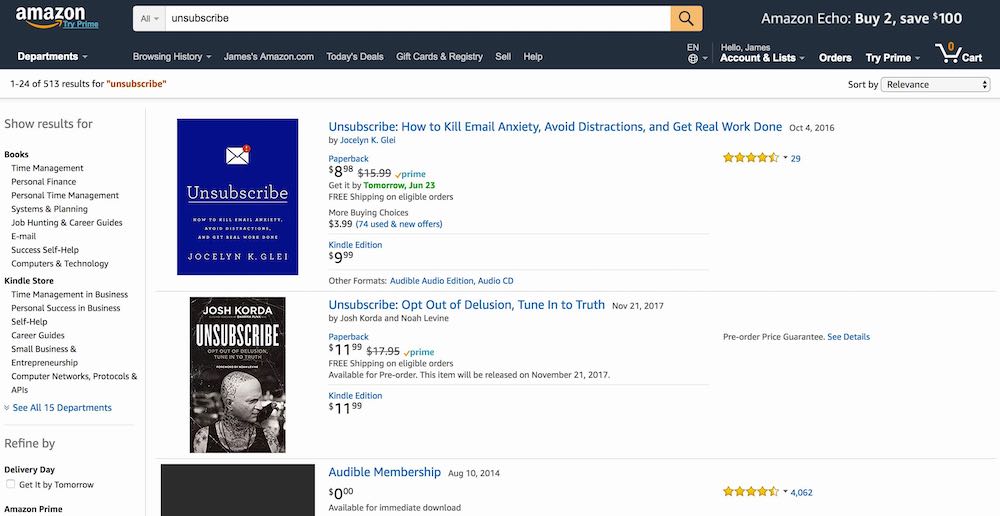 For example, many book titles include the term “shipping” and, as seen in the earlier examples from Amazon, when the search terms contained the words “cancel” and “unsubscribe” legitimate product results were returned.