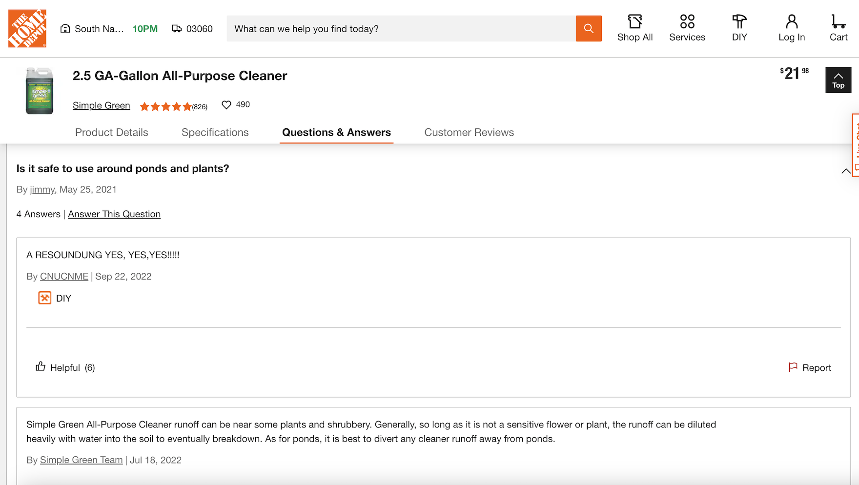 Similarly, shoppers at Home Depot can search through the Q&A section and post or peruse answers about specific topics, such as the environmental safety of the product or other sustainability factors.
